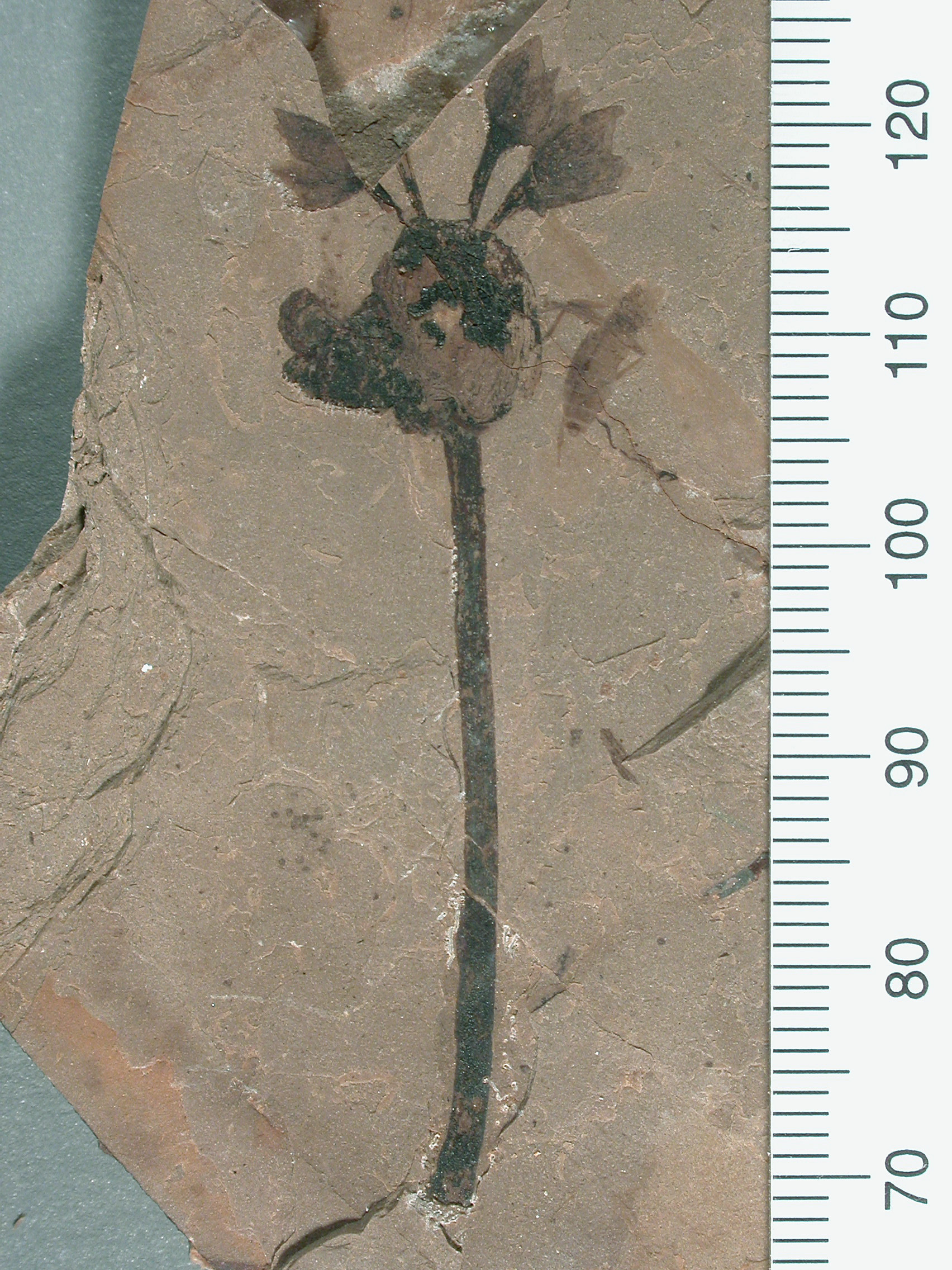 Compound ovary on stout pedicel topped by several small actinomorphic florets. Individual florets appear to have five petals.