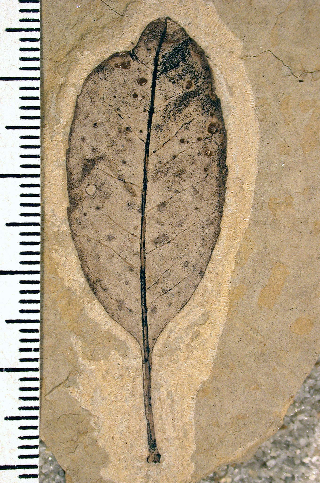 Ovate leaf with relatively long petiole. Pinnate primary vein, looping secondaries, no agrophics. Occasional intersecondary veins are present. Toothed margin.