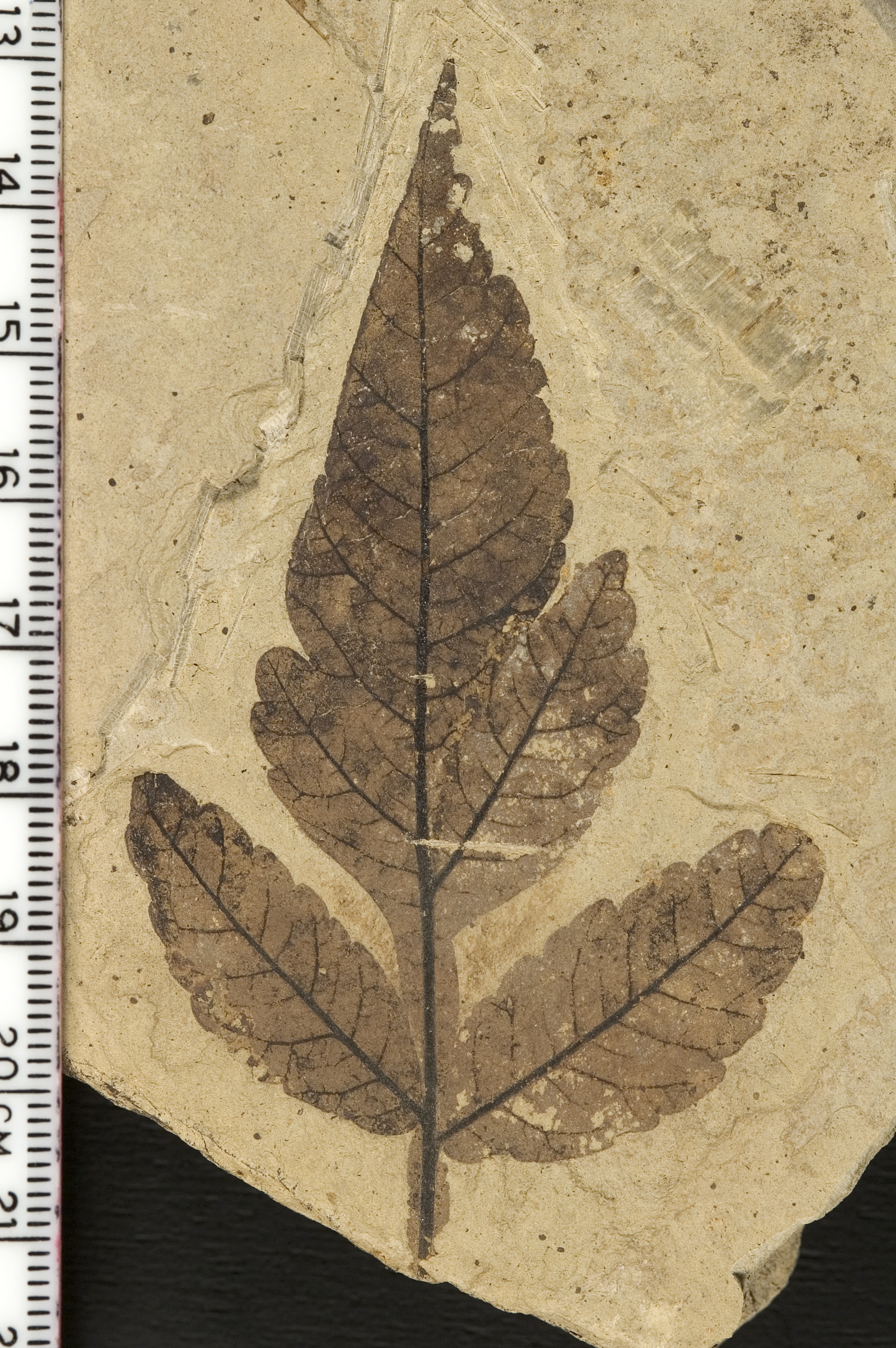 Compound leaves. Individual leaflets are narrowly elliptic with pinnate primary veins, craspedodromous secondaries, no agrophics. Margin has regularly spaced simple teeth. Petioles typically have laminar tissue along their length.