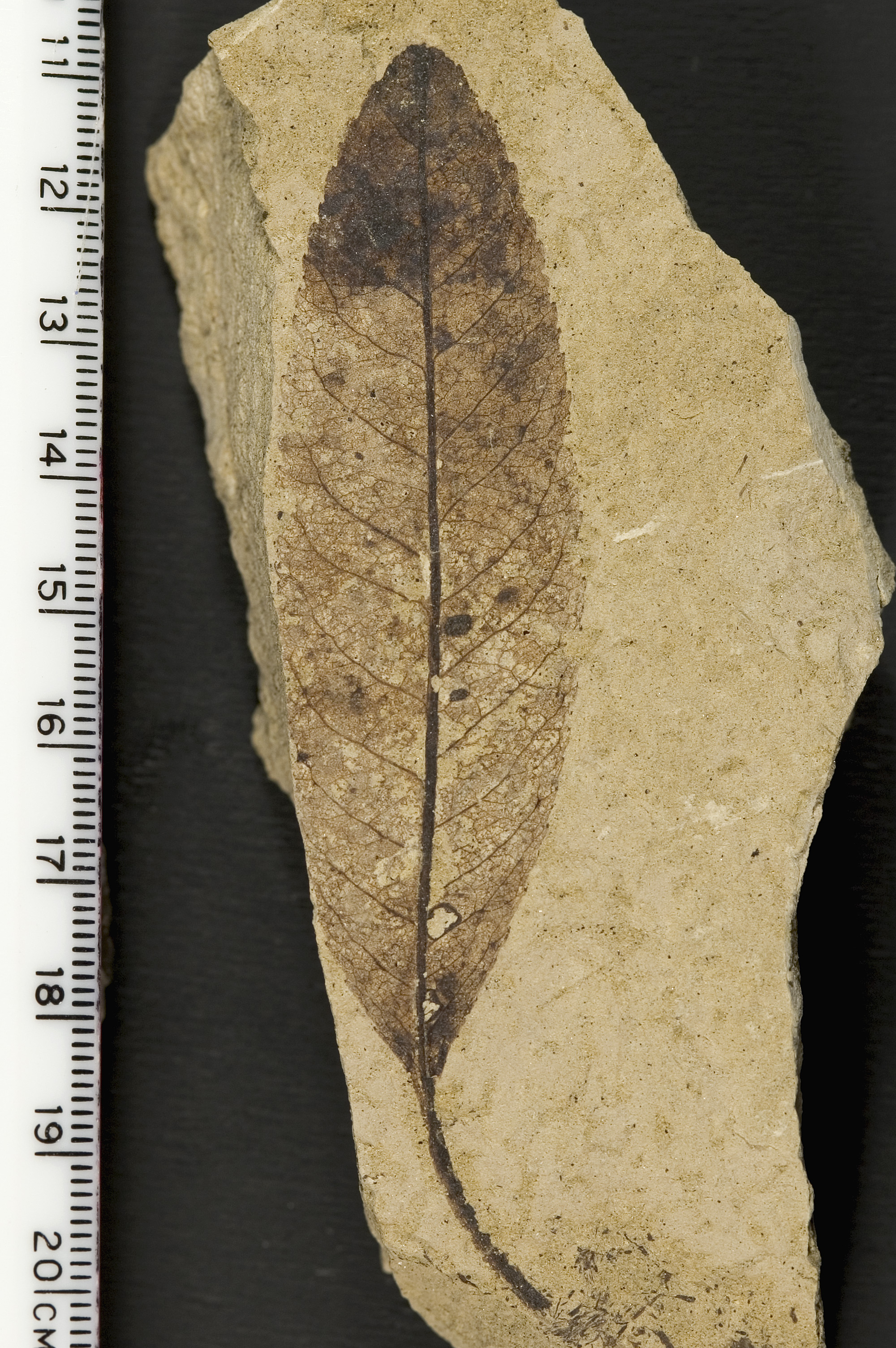 Leaves narrowly ovate to elliptic. Apex acute. Strong pinnate primary vein, semicraspedodromous secondary veins with occasional intersecondaries. No agrophics. Irregularly fine toothed margin.