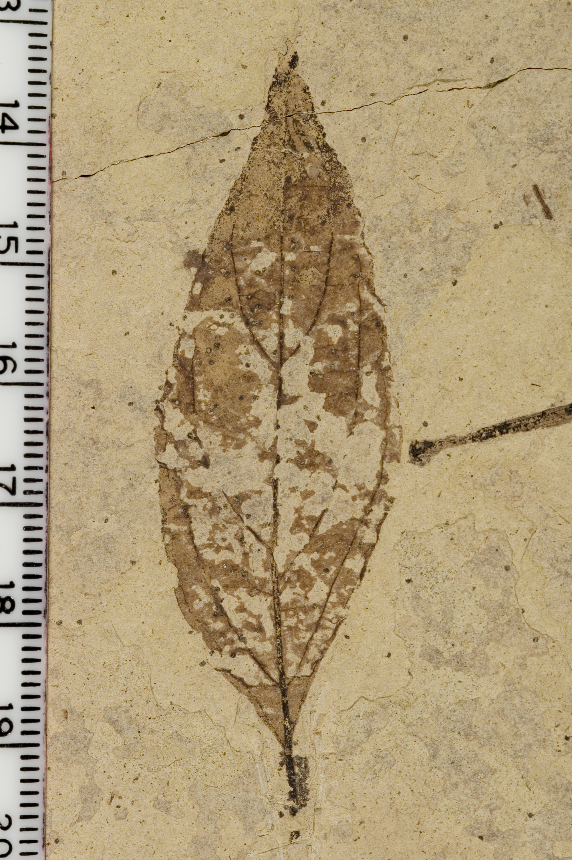 Simple narrowly elliptic leaves with pinnate primary vein and steeply angled secondary veins. Apex acute to acuminate. Margin appears entire.