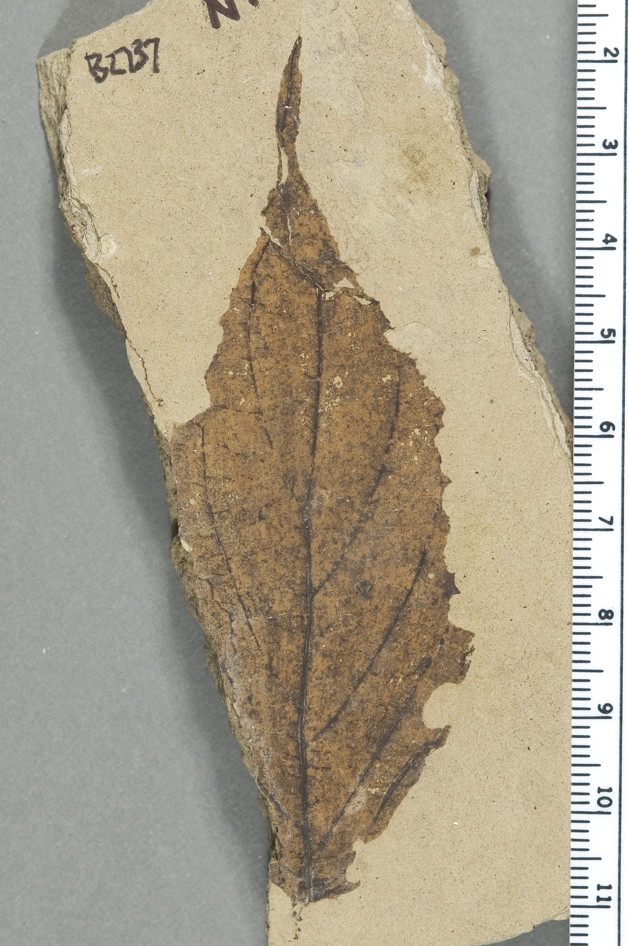 Simple narrowly elliptic leaves with pinnate primary vein and steeply angled secondary veins. Apex acute to acuminate. Margin appears entire.