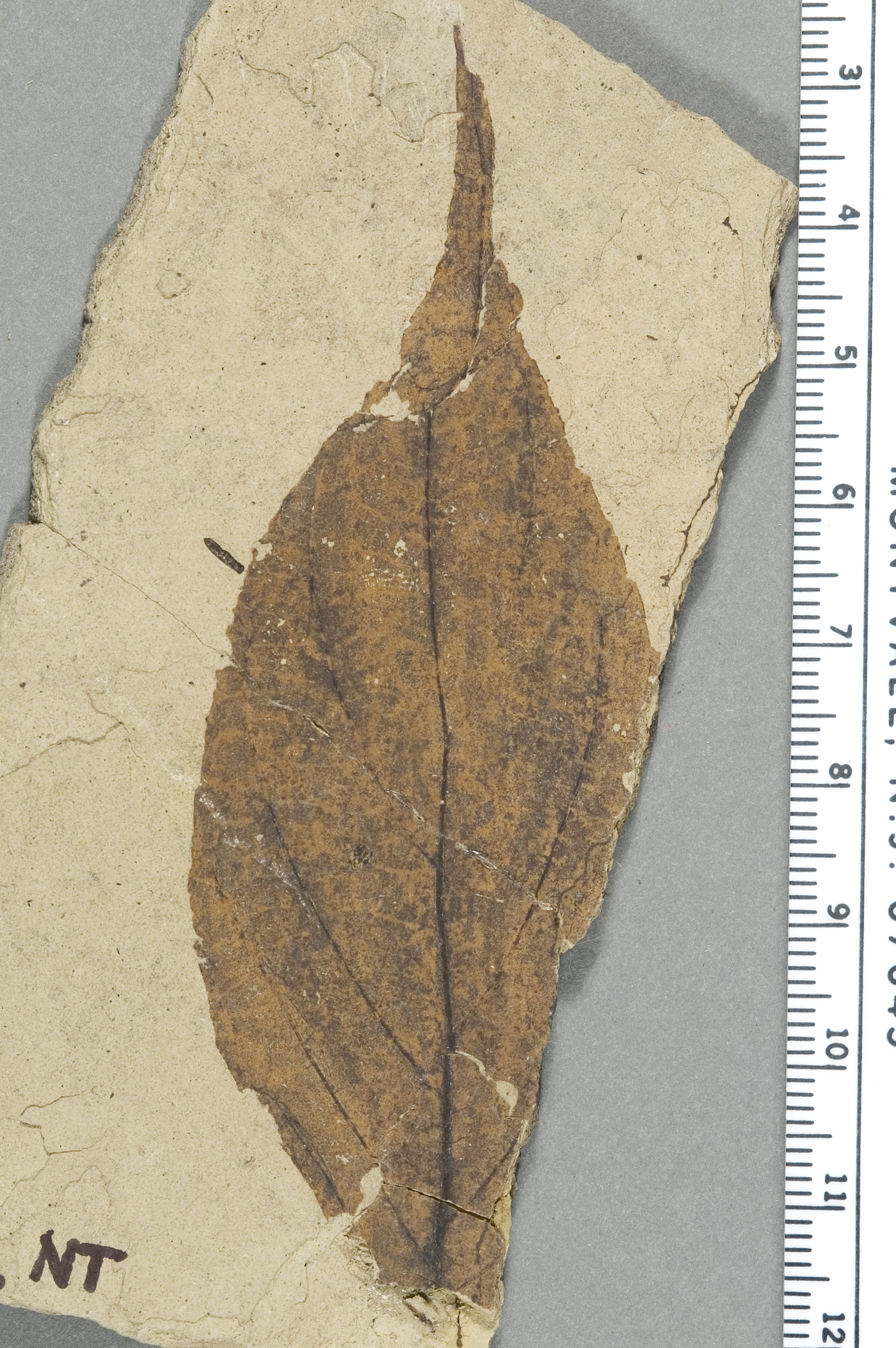 Simple narrowly elliptic leaves with pinnate primary vein and steeply angled secondary veins. Apex acute to acuminate. Margin appears entire.