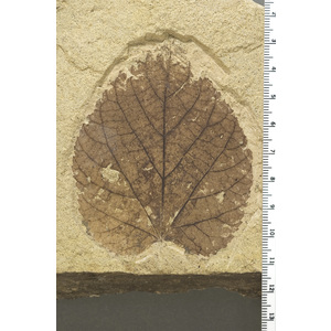 Broadly ovate leaf with actinodromous primary veins and semicraspedodromous secondaries. Leaf has a cordate base and compound agrophics.